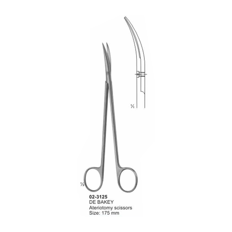 DE BAKEY Ateriotomy Scissors Sharp Curved 175 mm