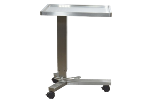 Designed for convenience, the trolley features a height-adjustable tray, allowing customization based on surgical requirements. The removable tray provides easy cleaning and disinfection after each use. Equipped with smooth-rolling, lockable caster wheels, the Mayo Trolley ensures effortless mobility and stability during operations.